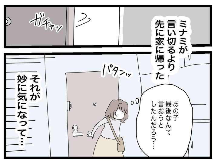 まさかマチ子に冷たくされるとは思っていなかったのか、すがるように呼び止めるミナミ。ようやく反省したかのようにも見えましたが、そう簡単に性根が直るはずもなく…。