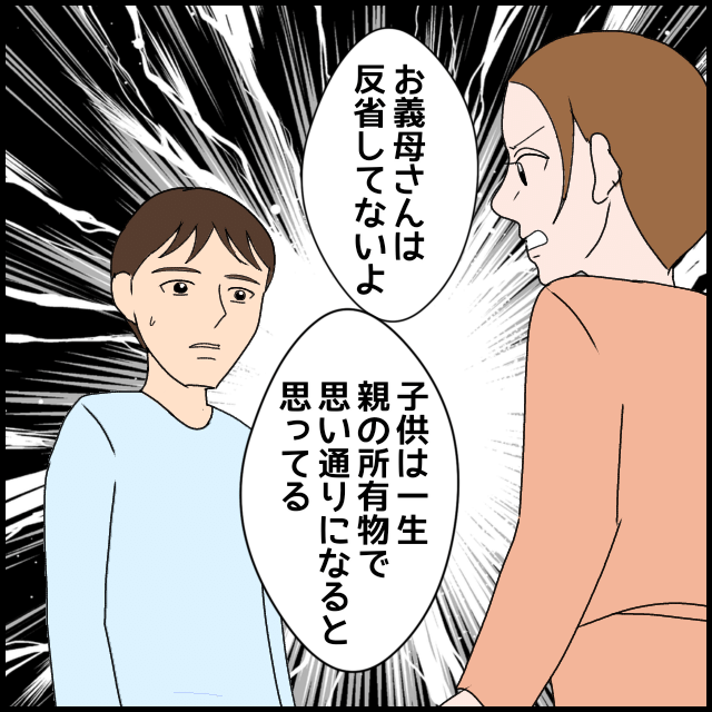 夫婦で心療内科に行くと、夫は海外在住だった子ども時代に“言うことを聞かなければ一人だけ置いていく”などと脅されたことで、未だに「義母に支配されている」と指摘される。夫は、会わない一年間で義母が変わってくれることを期待していたというが、それを聞いたうみは「期待するから逃げられないんだ」と感じて…。