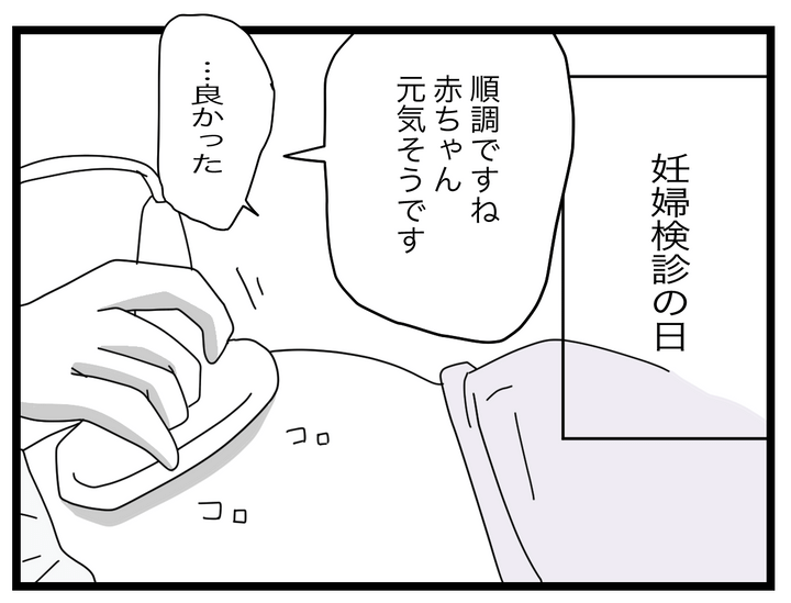 ある日の妊婦健診で、お腹の子が順調に育っていることを知り安堵するマチ子。