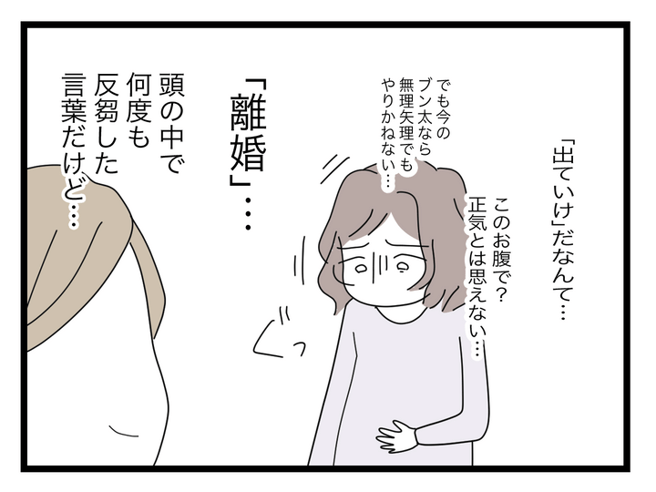 おそらく「どうせ出ていけるわけないんだから諦めろ」というニュアンスな気はしますが、マチ子としては「離婚」という言葉は自分から切り出すカードだと思っていたので、平気な顔して妊婦を追い出そうとするブン太の発言に恐怖を感じます。