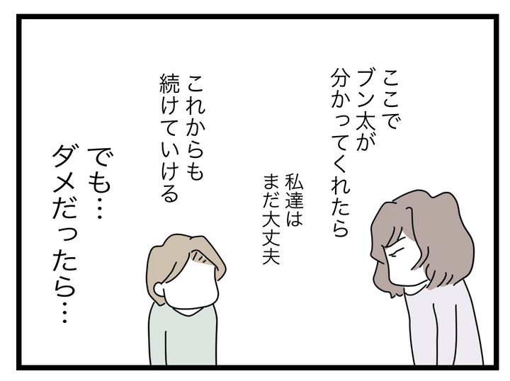 常識を逸脱している半分ルールの異常さを訴えたマチ子。今まで我慢して言えなかったことをようやくハッキリ伝えることができて、これで理解してくれればきっと再構築できる…そう思っていました。