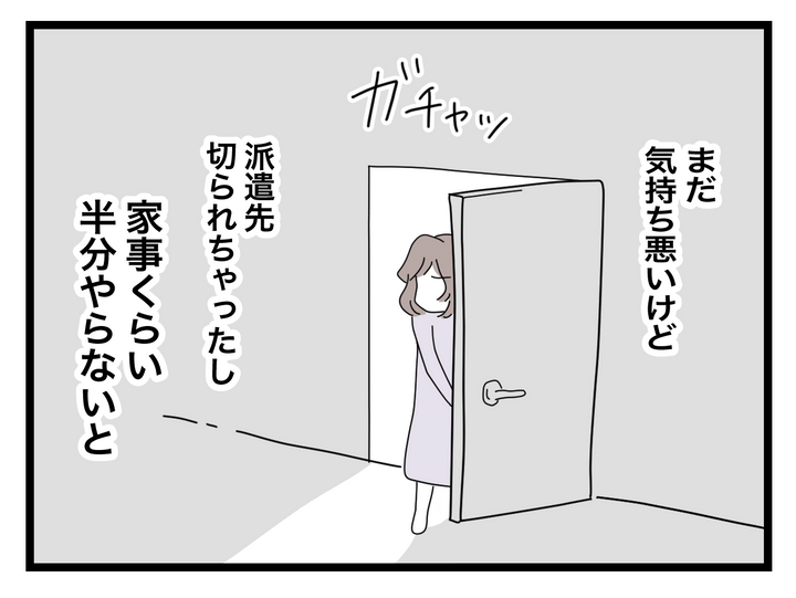 職を失って、つわりで家事も思うようにできない…綺麗な部屋を見て余計に責められているような気分になるのでした。