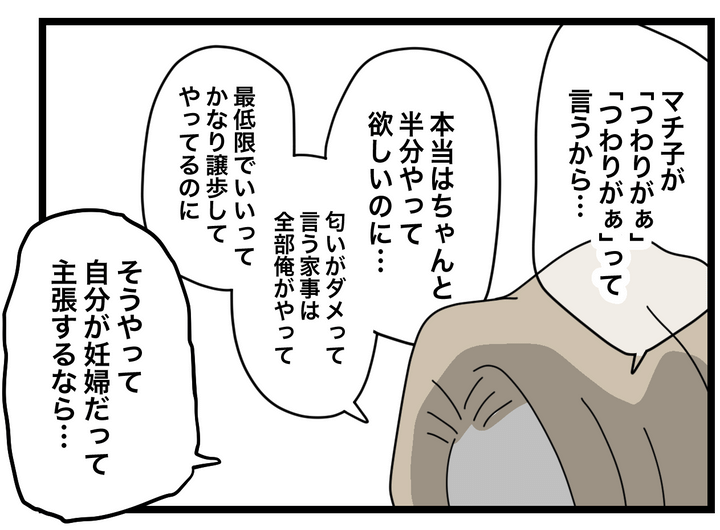 マチ子が何を言ってもブン太には妊娠やつわりを理由に家事をサボりたいというふうにしか聞こえないようです。そしてマチ子のことを、過剰に権利を主張する「妊婦様」みたいだと言い放ちました。