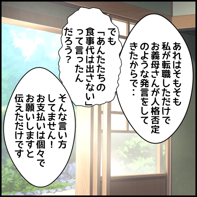 しかし1年後、義母と再び交流が始まってしまい、うみは心の糸が切れてしまう。同じく義母にたかられた経験がある義叔母に相談すると、兄(=義父)に直接話をしてくれることになり、義父が“うみを悪者扱いする義母”を信じ切っていたことが判明する。1年間会えなかったのはうみのせいだと思い込んでいる義父に、うみは「夫の判断です」と真実を告げて…。