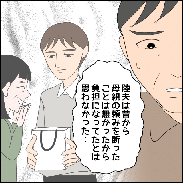うみ家族に会いに来る際の旅費はもちろん、高級プレゼントをねだるなど金銭的に搾取され、何も言わずに従う夫にも不満を募らせていく。ところがある時、手ぶらで実家に帰った夫が「親への感謝が足りない」と義母に文句を言われたことに憤慨。そのまま義母と絶縁状態になり、平穏な生活が戻って来る。