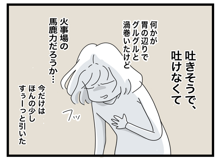 主人公・マチ子は妊娠をきっかけに夫・ブン太と結婚。家事も生活費もきっちり半分にしたいブン太はつわりのせいでやれない家事が増えていくマチ子に不満を漏らすように。マチ子は会社でもつわりに苦しみながら精一杯仕事をこなしてきましたが同僚から厳しい言葉を投げかけられ、やむなく休暇をとることに。さらに病院からは診断書を断られ、傷病手当も申請できない現実に絶望していました。そんな中ブン太から毎月の生活費を催促され、用意できなかったことを責められます。翌日お金を用意して謝ろうとしましたが、今度は準備した食事について不満を言い始めるブン太。栄養面が考えられておらず不公平だと主張するブン太に我慢の限界を迎えたマチ子は「この半分野郎!」とついにブチギレてしまったのでした。