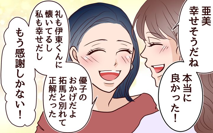 でも、そうか、ふつうは好きな女に夫がいれば諦めるものなんだな。伊東は亜美にも俺にも遠慮していて、その遠慮が必要なくなって、ようやく幸せを手に入れたんだな。