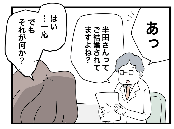 子どもを授かったことをきっかけに結婚した主人公・マチ子とブン太。同棲当初から【半分】にこだわるブン太は生活費も家事も半分ずつというルールを徹底してきましたが、それはマチ子がつわりに苦しむようになっても変わりませんでした。マチ子に少しずつできない家事が増えていくことに苛立つブン太。マチ子にとって居心地が悪いのは家だけではありませんでした。会社でもつわりが酷くて仕事がままならなくなってしまい、同僚・ミナミから「みんなつわりの人は迷惑だと思ってる、仕事ができないなら会社を休むべき」と責められてしまいます。何も言い返すことができないマチ子は休暇申請をしましたが、有給だけでは足りず、少しでも生活費を確保するために手当金を申請しようと考えます。必要な診断書をもらうため産婦人科に行きましたが、医師から診断書は出せないと言われてしまい…。