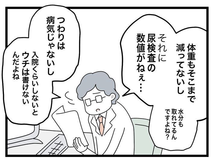 検査結果には特に異常もないため、入院するレベルでないと診断書は書けないと言われてしまい絶望するマチ子。