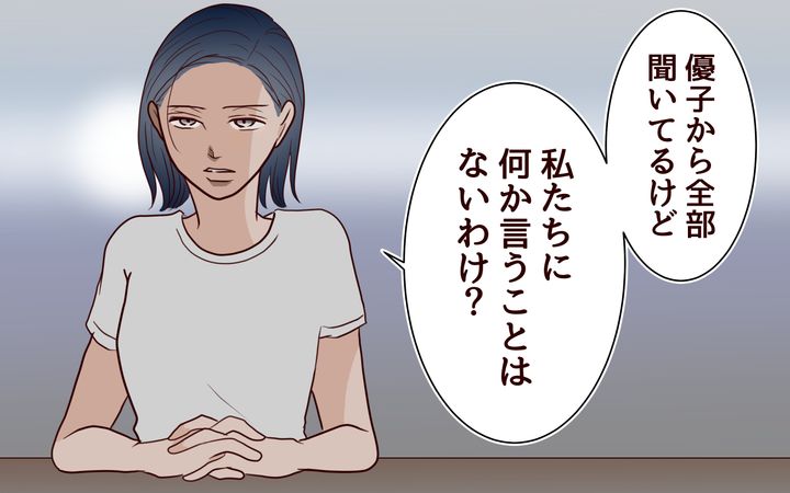 「私たちに言うことはない?」と聞いても、優子から全部聞いていると言っても、しらを切ろうとする拓馬。この人には本当に誠意というものがないんだなと、私は心底がっかりしました。