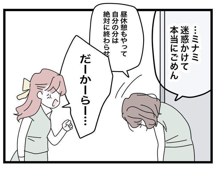 予定外の仕事を振られて迷惑しているとみんなを代表して文句を言うミナミですが、これに関しては不満をぶつける相手が違う気もしますよね。