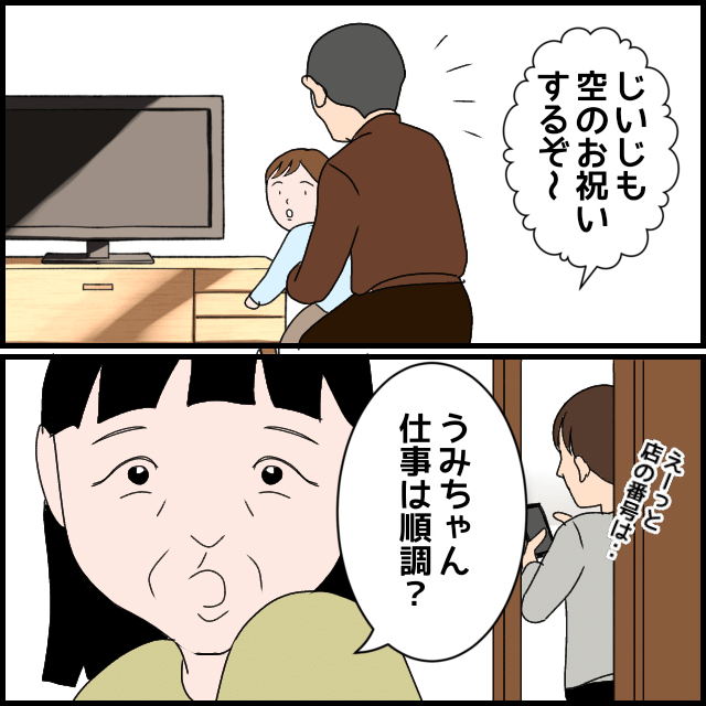 しかし1年後、突然、義父母が家に訪ねてくるという。顔を合わせたくないうみは一人で外出するが、夕方になって帰宅するとまだ義母が居座っていた。さらに、2週間後に控えた孫の誕生日が気になるようで…。