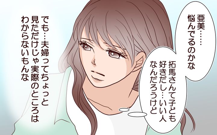 外から見ているだけでは、実際の夫婦仲はわからないものです。何かあったら相談してほしいし、私は亜美の味方でいたいと思いました。