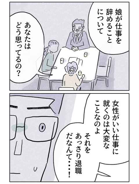 そして、海外赴任についていくために娘が仕事を辞めることになるという現実について、母は真剣な表情で彼へ問いかけるのでした。