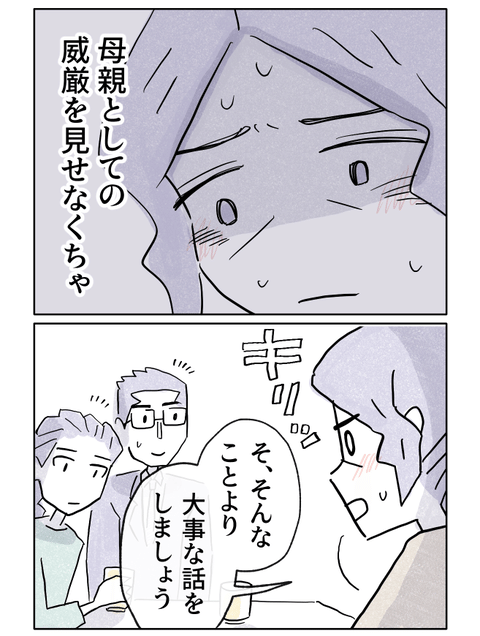 母としての威厳が揺らぎそうになる中、気持ちを立て直さなければと自分に言い聞かせます。