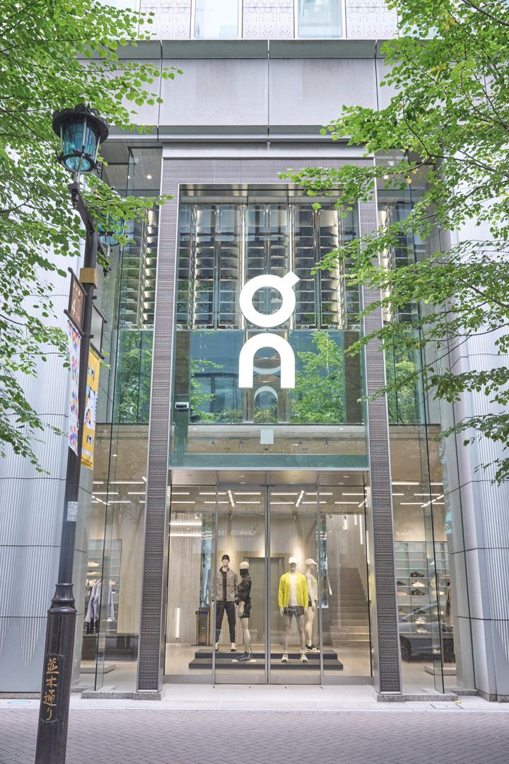 世界で2番目の規模の旗艦店「オン フラッグシップ ストア トウキョウ ギンザ」は、大きなブランドロゴが目印。ランニングギアはもちろん、そのほかのスポーツカテゴリーのアイテムやライフスタイルグッズもラインナップ。 Hearst Owned