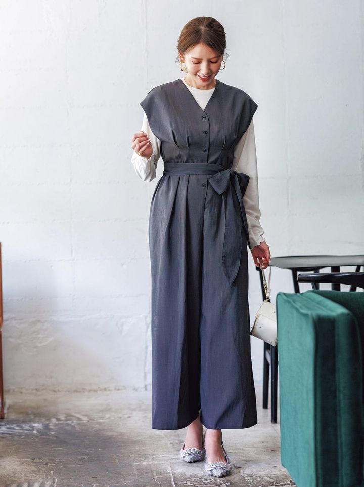 フォーマルオールインワンも抜けシルエットで万能服に
