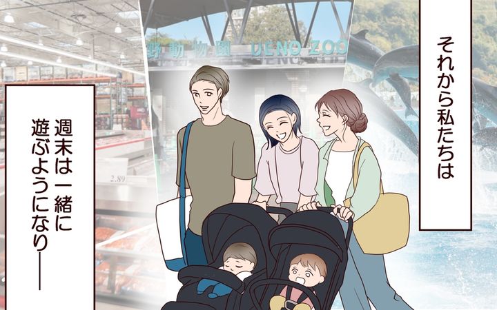気も合うママ友ができて、家族ぐるみでお出かけ。息子も喜んでるし夫も機嫌がいい!嬉しく思う主人公。