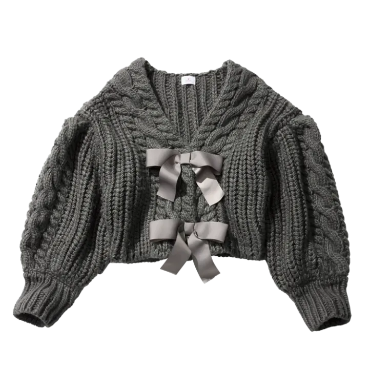 ワンピースの上に羽織ったり、ロングスカートなど幅広くあわせやすい万能アイテム。前リボンがガーリー。