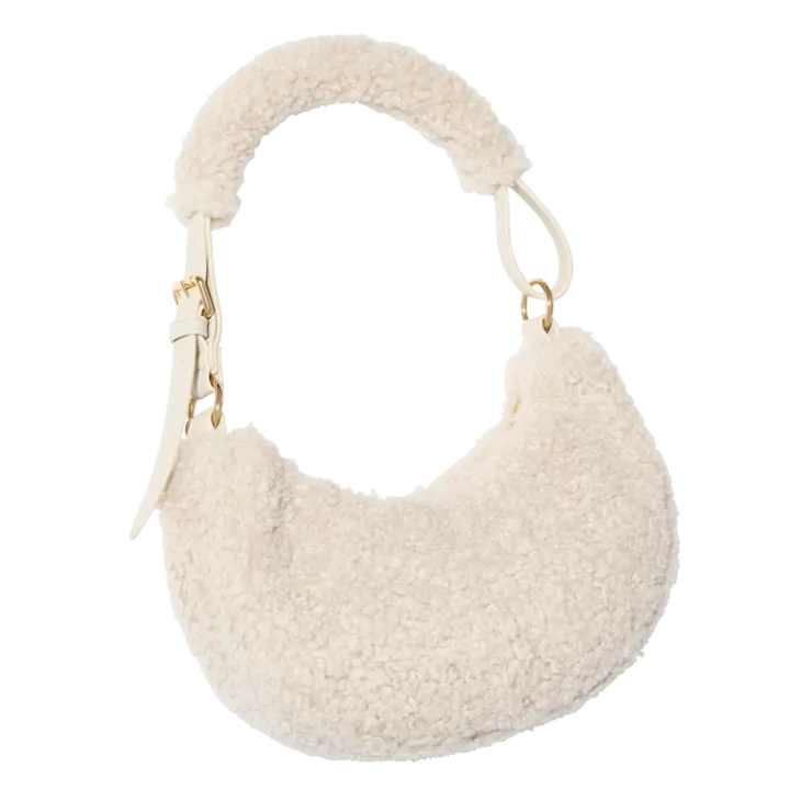 ぬいぐるみのような触り心地と軽さが魅力のハンドバッグ。純白もこもこで女み満点。