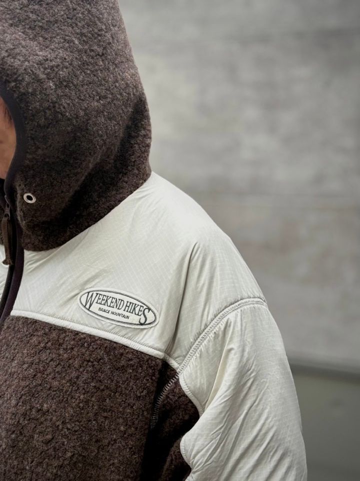 大好きなブランドのひとつ、ザ シンゾーン。展示会こそ行けなかったものの、たまたまスナップの撮影で立ち寄ったプレスルームで見かけてこちらも一目惚れ。今季の旬でもあるブラウンカラーのボアにリップストップ素材の配色がアクセントになったフーディブルゾン。アウトドア感たっぷりながら、キレイめなスラックスやレディなスカートにも合う、どこかモダンなムードでタウンユースにもなじむんです。しかもこのブルゾン、ウールナイロンの混紡糸が使用されているから、とにかく軽くてあったかい。ニットやスエットに羽織ってコート替わりに、本格的な冬はオーバーサイズコートの下に重ねたりと、かなり使えそうな予感。フロントジップはダブルジップになっていて、インナーにはプルオーバー以外にもシャツを合わせても可愛いなとコーデを妄想中です。