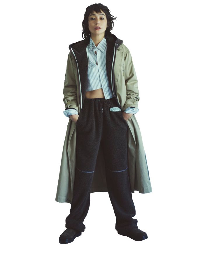 実はオトナミューズ12月号のP73で竹下玲奈さんも着用しているんです。お揃いのパンツもあります。ボアパーカ¥49,500、ボアパンツ¥34,100(共にザ シンゾーン/シンゾーン ルミネ新宿店)、シャツ¥66,000(オムガールズ/アダム エ ロペ)、グラフィック入りトレンチコート¥242,000(マディソンブルー)、シューズ¥53,900(フィーニー)