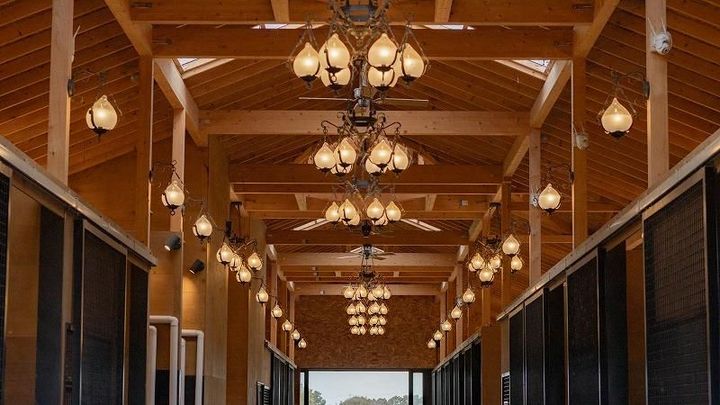 馬たちが暮らす厩舎にシャンデリアが!こんな厩舎見たことない…!