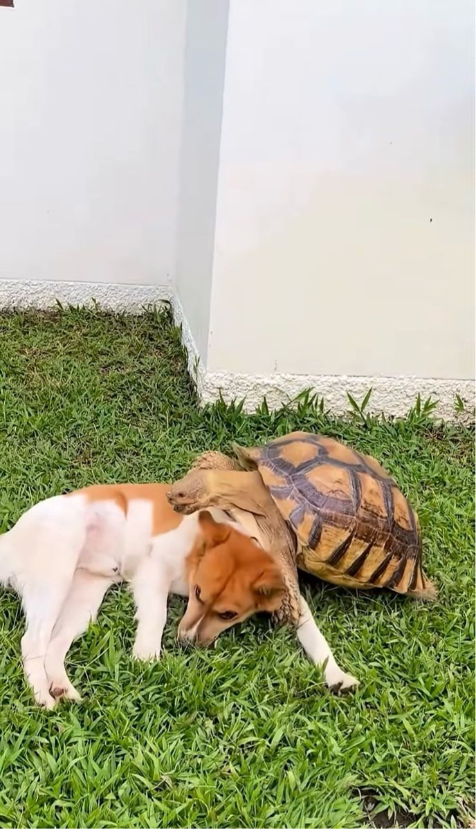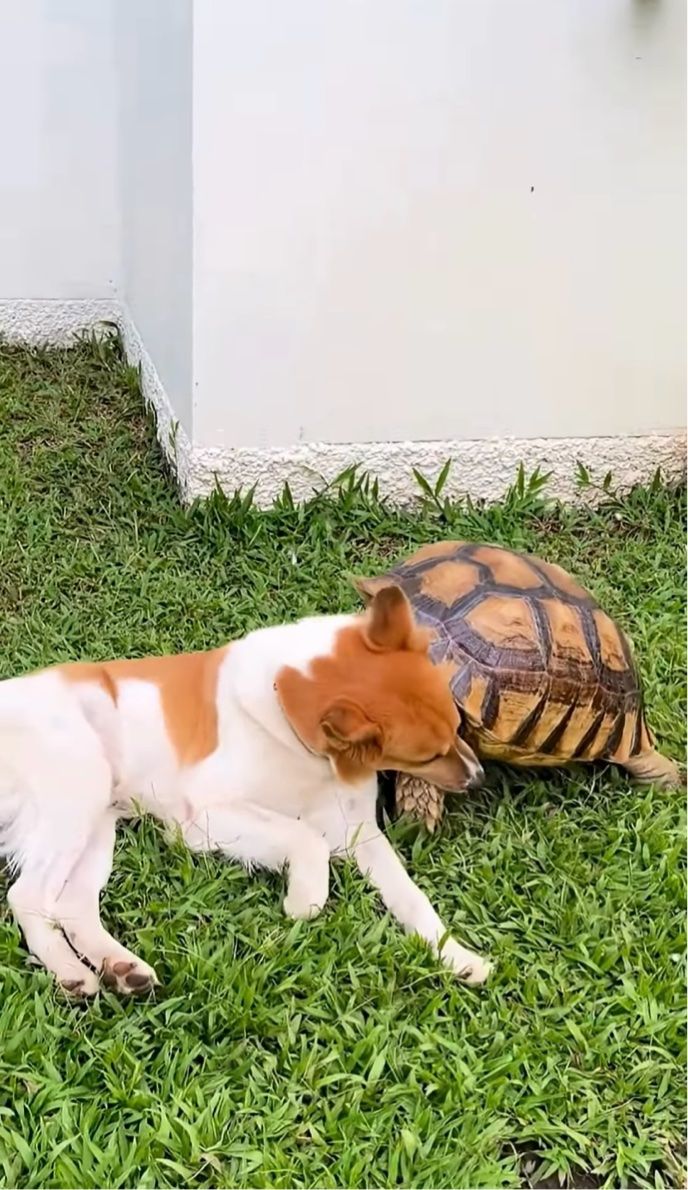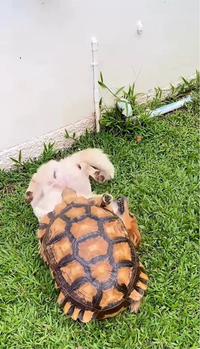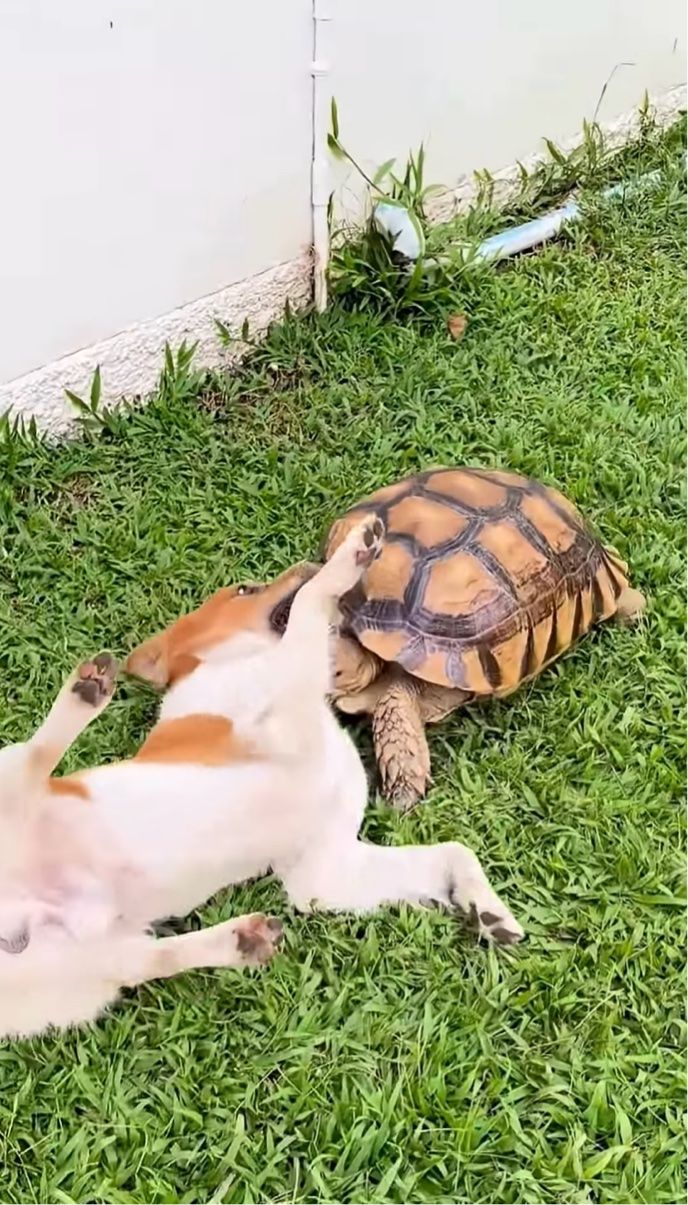 仲良くじゃれ合うペットたち。 とても楽しそうに遊ぶその子達は、なんとイヌとカメでした!