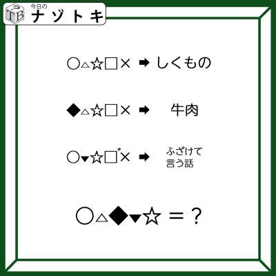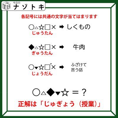 クイズです!「右のヒントから左の単語を導きましょう」各記号は同じ文字が入ります【難易度LV3.・中辛】