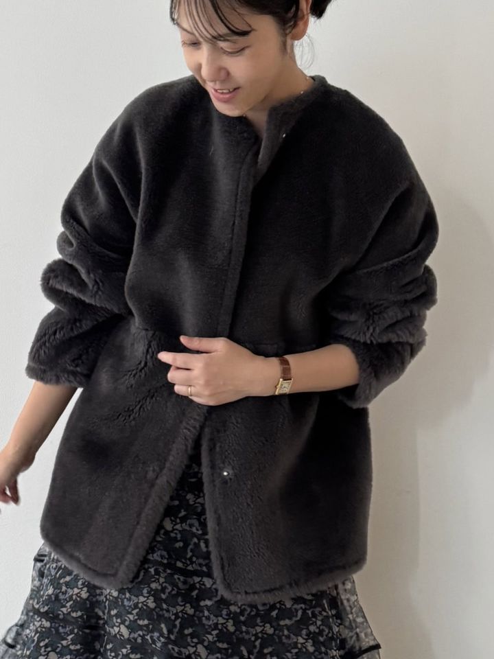 「このRHCのアウターはミリタリーライナーのシルエットをベースに作られているので、カジュアルにもキレイ目にもどんなスタイリングにも合わせやすいのが魅力。とにかく着用したときのシルエットと安心感のあるふわふわの着心地が大好きで、この時期必然的に登場回数が増えます(笑)」アウター¥58,300(RHC ロンハーマン/ロンハーマン)