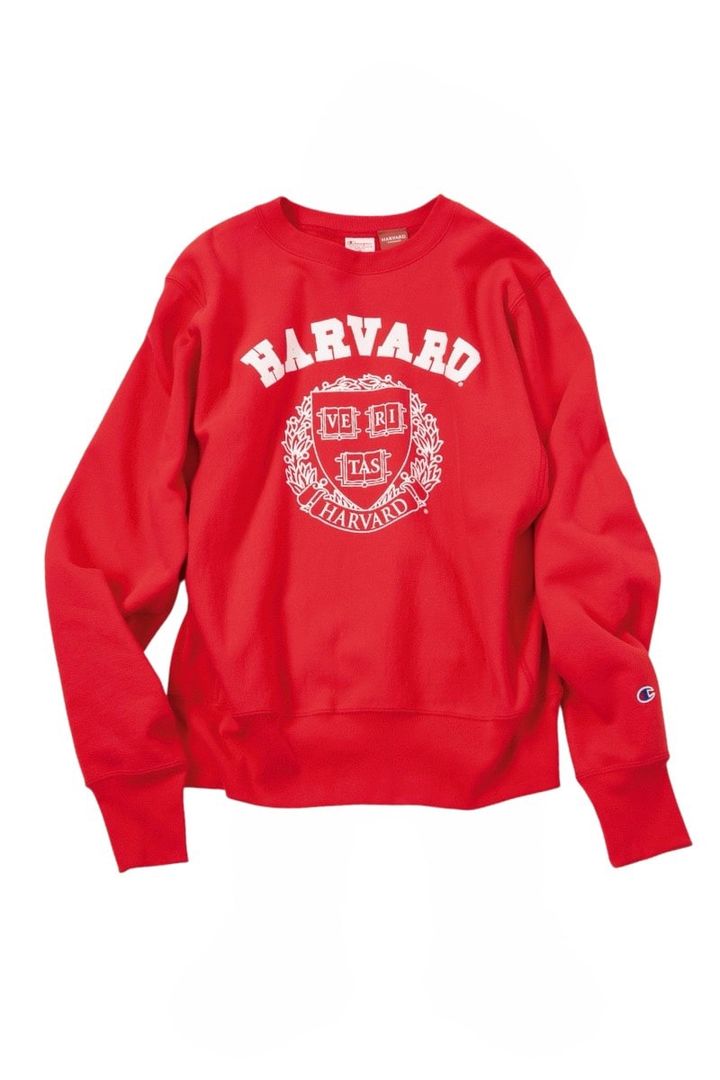 HARVARDアイテムは要チェック。スウェット¥28,600/チャンピオン(ヘインズブランズ ジャパン カスタマーセンター)