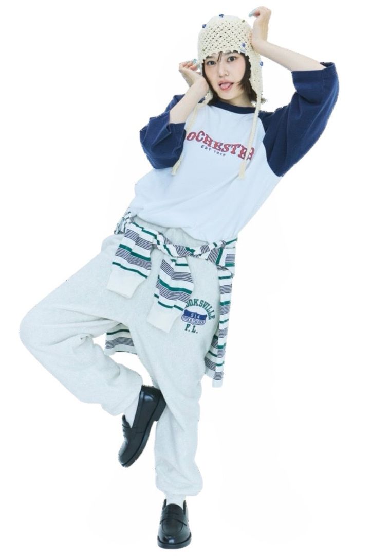 ロンT¥7,590、腰巻きしたロンT¥7,590、スウェットパンツ ¥12,980/以上すべてチャンピオン(ヘインズブランズ ジャパン カスタマーセンター)、帽子¥7,920/オーバーライド(オーバーライド 神宮前店)