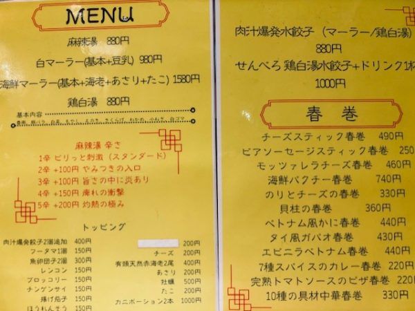 店長さんとお話してみたら、「白マーラー」人気!ですが、秋だけの「贅沢きのこたっぷり麻辣湯」も出ましたよ!とお聞きしました。自分で食材を選ぶタイプではなくここは、メニューを見て注文です。平日13時半頃訪問で比較的空いていたので、話をしながら直接注文しましたが、スマフォからQRコードを読み込んでオーダーするのことも可能でした。