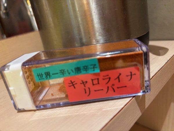 メニューにある1~5辛の辛さについて店長さんにお聞きしたら・・・出てきましたよ♪辛~い唐辛子として有名な「キャロライナ・リーパー」が!すでにやみつきになっていいる方もいるようです。気になる方はスタッフさんに声をかけけみてくださいね。