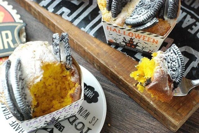 カボチャとオレオのハロウィンカップケーキの作り方(調理時間:15分(焼く時間は除く))