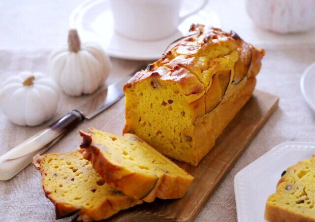 かぼちゃの優しい甘さが引き立ち、シナモンとナツメグがほんのり香る、クルミの食感が楽しいパウンドケーキです。しっとり濃厚でずっしりとした、秋ならではの味わいです!