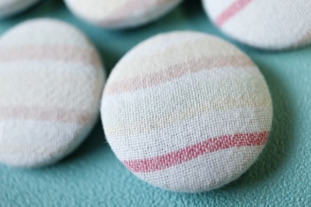 簡単にハンドメイドできるので、ノーマルなボタンでは少し物足りないときや、端切れ布を活用したいときにもぴったり。ダイソーなどの100円ショップで材料がそろえられるので、気軽にたくさん作れるのも魅力です。基本的に、金属やプラスチックなどの土台となるボタンに布をかぶせ、裏側で留め込んで仕上げます。柄の出方を工夫したり、ちょっとした刺繍を添えたりと自由度の高いアイテムです。
