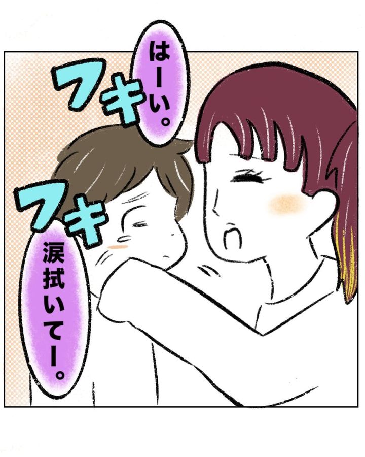 そして、「はーい。涙拭いてー」と笑顔で言いながら自分の服の袖でまーくんの涙を拭うと、