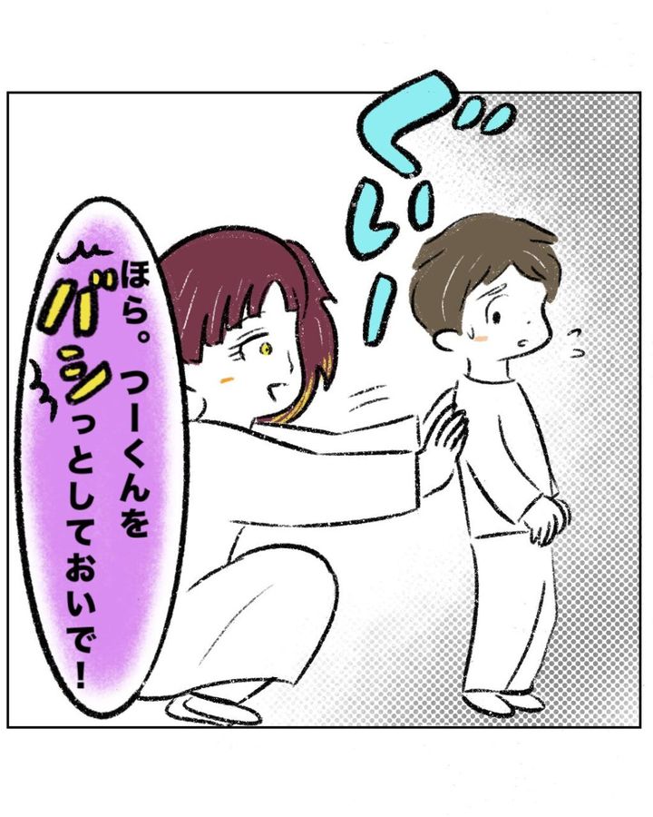 さらにつーくんママは、まーくんの目をまっすぐ見て「まーくん、男の子でしょ?」と話しかけました。