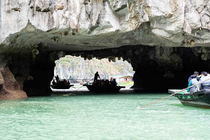クルージングをひとしきり楽しんだら、小さなボートに乗り換えてより近くでその風景を楽しみました。他にも船上でのランチや鍾乳洞を探検する時間も。
