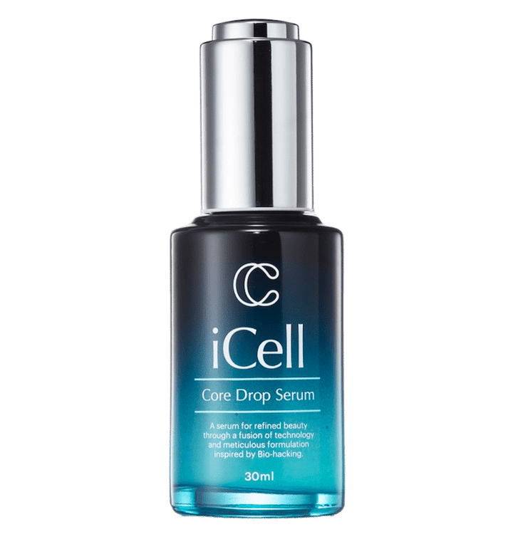 iCell コアドロップセラム 30mL ¥13,200 ⾼純度エクソソームであるハイグレードエクソソームを10%も⾼濃度配合。ハリ感やツヤ感だけでなくたるみや⽑⽳、肌荒れ、くすみ、シミ、シワといった幅広い悩みにアプローチします