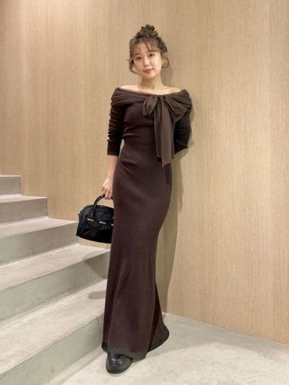 さりげなく肌見せできる“オフショル”ニットワンピ