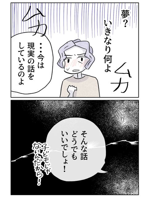 結婚の話をしているのに、なぜ突然“夢”の話をされるのか――。母の苛立ちは抑えきれず、「そんな話、今はどうでもいいでしょ!」と強い口調で言い放ちます。