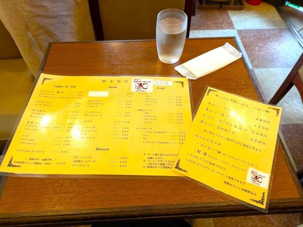 11時までがモーニングタイムです。モーニングのメニューは、Aセットがトースト480円、Bセットが玉子480円、Cセットがトースト&玉子500円、Dセットが玉子サンド540円です。コーヒーか紅茶のドリンクが選べます。