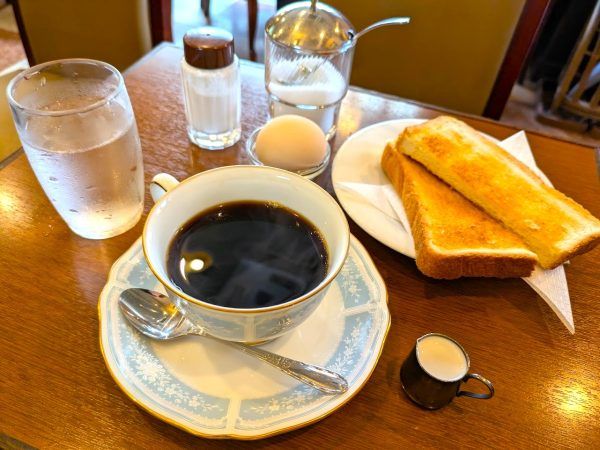 モーニング Cセット トースト&玉子 500円 バタートーストにゆで卵付き。セットドリンクはもちろんコーヒーです。