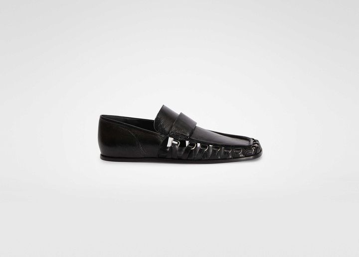 定番ローファーの形はそのままで、サイドはレザー製の編み込みデザインに。ローファーとレザーサンダルをモードに融合したジル サンダーの1足。