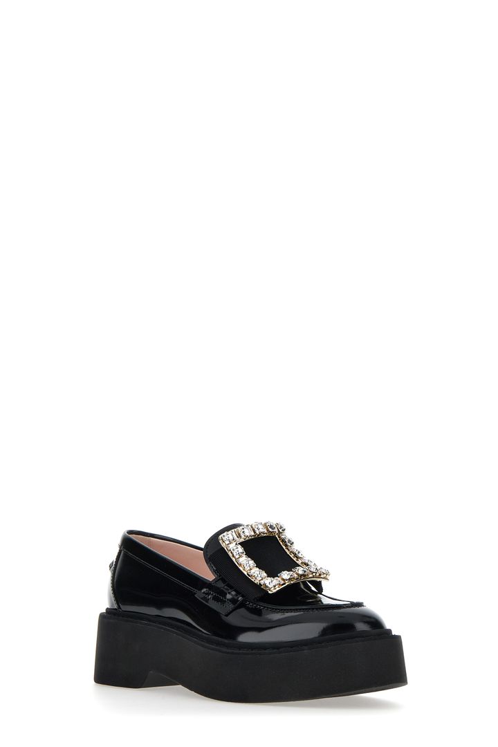 ロジェ ヴィヴィエの都会的なライフスタイルをイメージしたコレクション「ヴィヴ レンジャー」から登場した厚底ローファー。艶やかなエナメルレザーに、ビジューをあしらったメタルバックルを配し、メゾンが描くロマンティックな世界観を日常に落とし込んだ。