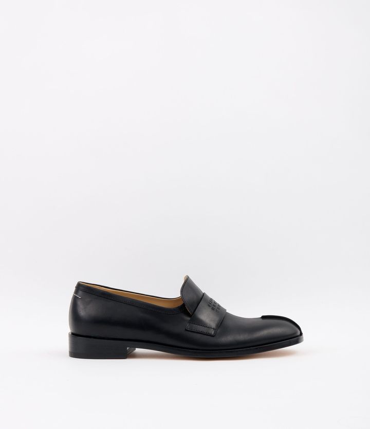 MM6 メゾン マルジェラは、王道のコインローファーにメゾンの遊び心をたっぷり詰め込んだ。ストラップ部分はアイコニックなナンバーのタグに。さらに、つま先はタビシューズで、存在感抜群の1足に仕上げた。