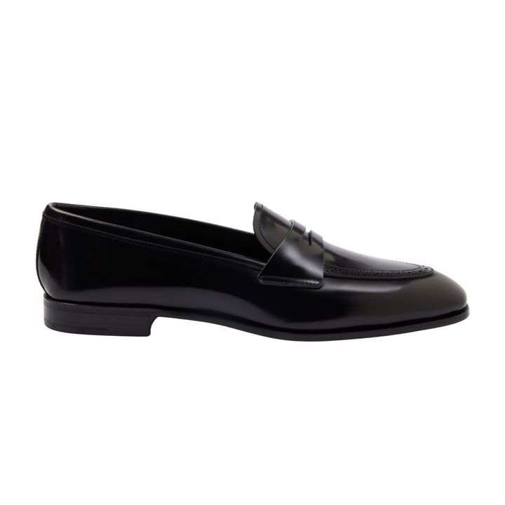 コインローファー、あるいはペニーローファーと呼ばれるこのシューズは、甲のストラップにある小さな切り込みにコイン(ペニー)を挟んでいたことが名前の由来。王道の黒ローファーで、ソフィスティケートな佇まいが特徴的だ。ビジネスやフォーマルシーンにも活躍するが、デニムや白ソックスなど、カジュアルなアイテムとも好相性。従来のシルエットをキープしつつ、メゾンのこだわりを光らせた名品をセレクトした。