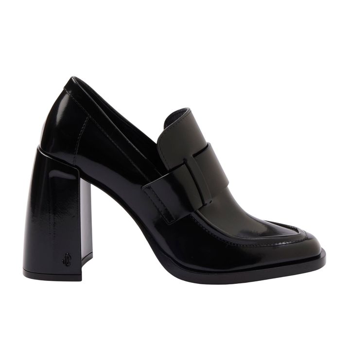 ジミー チュウからドールライクなヒールローファーが登場。艶やかなエナメルフィニッシュに甲の高い位置まで続くタン、サイドまで覆うストラップ、そしてチャンキーなブロックヒール。ボリューム感たっぷりの1足は、バービーライクな足もとを叶えてくれる。